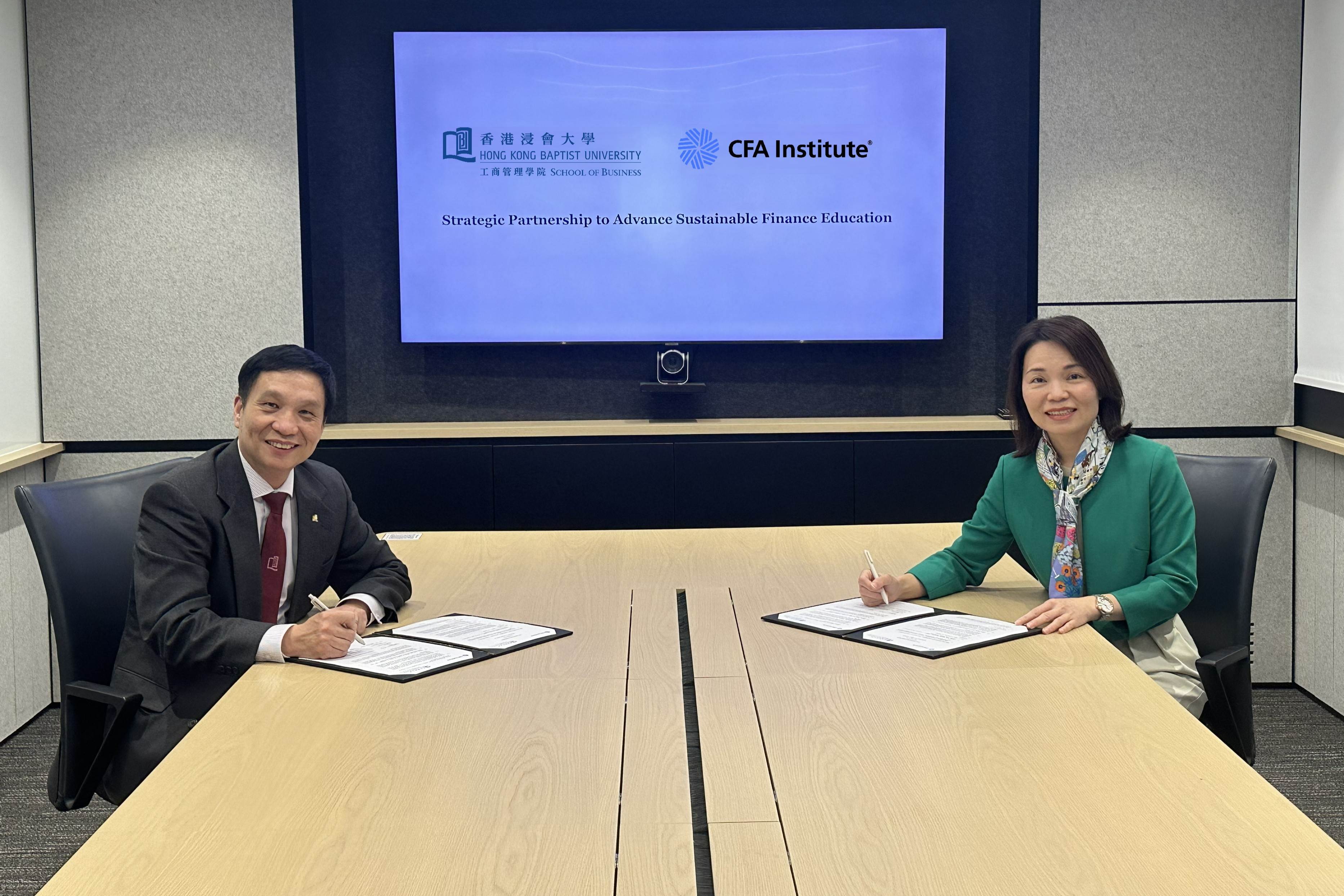 香港浸會大學(浸大)與CFA協會最近簽署合作備忘錄,攜手推動可持續金融教育在香港高等教育領域的發展。浸大工商管理學院將於2026年1月起,把CFA協會「可持續投資證書」的課程內容,直接納入其修課式碩士課程。是項學界和業界的合作為全球首創,旨在為金融專才裝備環境、社會和管治(ESG)投資方面的專業知識。