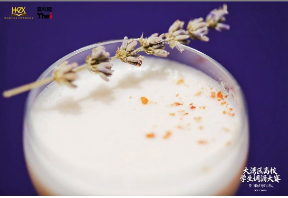 「最佳味覺平衡獎」銀獎得獎者李鏵姍的作品 「初雪杏香」。作品靈感源自童年與母親初嚐 杏仁豆腐花的溫暖記憶,以威士忌融合杏仁酒 與燕麥豆奶,濃郁杏香包裹綿密奶韻,尾帶糖 漿清甜,彷彿是純真時光的美好回望